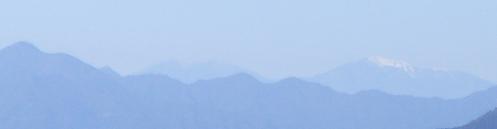 うっすらと白い山頂をみせる山は悪沢岳・赤石岳だそうです。 |