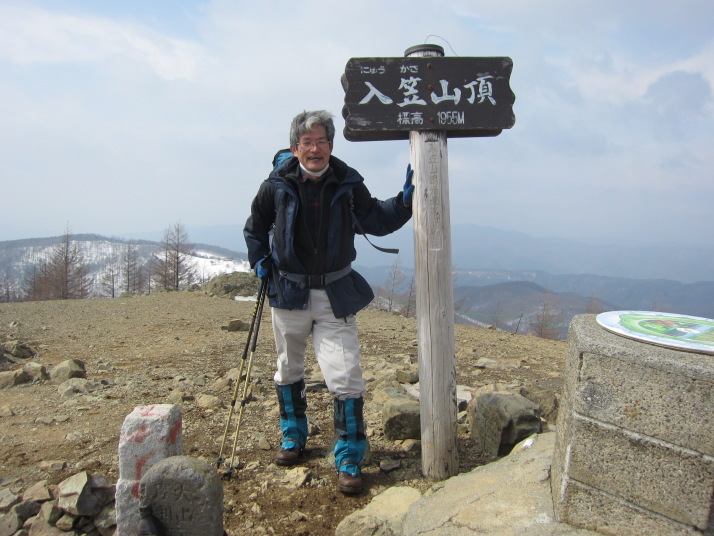 11:48 入笠山の山頂へ到着。3月の温かさ?、風を遮る木が無いため?、