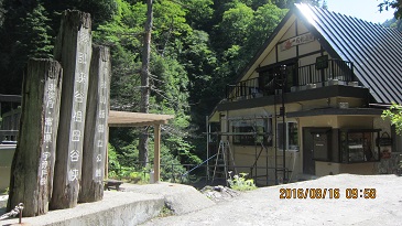 8/16 10:33 トンネルを抜けると対岸の婆母谷温泉に到着 |